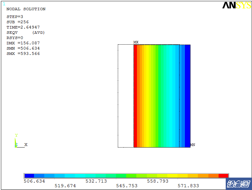 分析厚壁筒变形情况和解析解的边界条件,改变约束条件:增加等效端面的Y向位移耦合边界条件(见图3)。