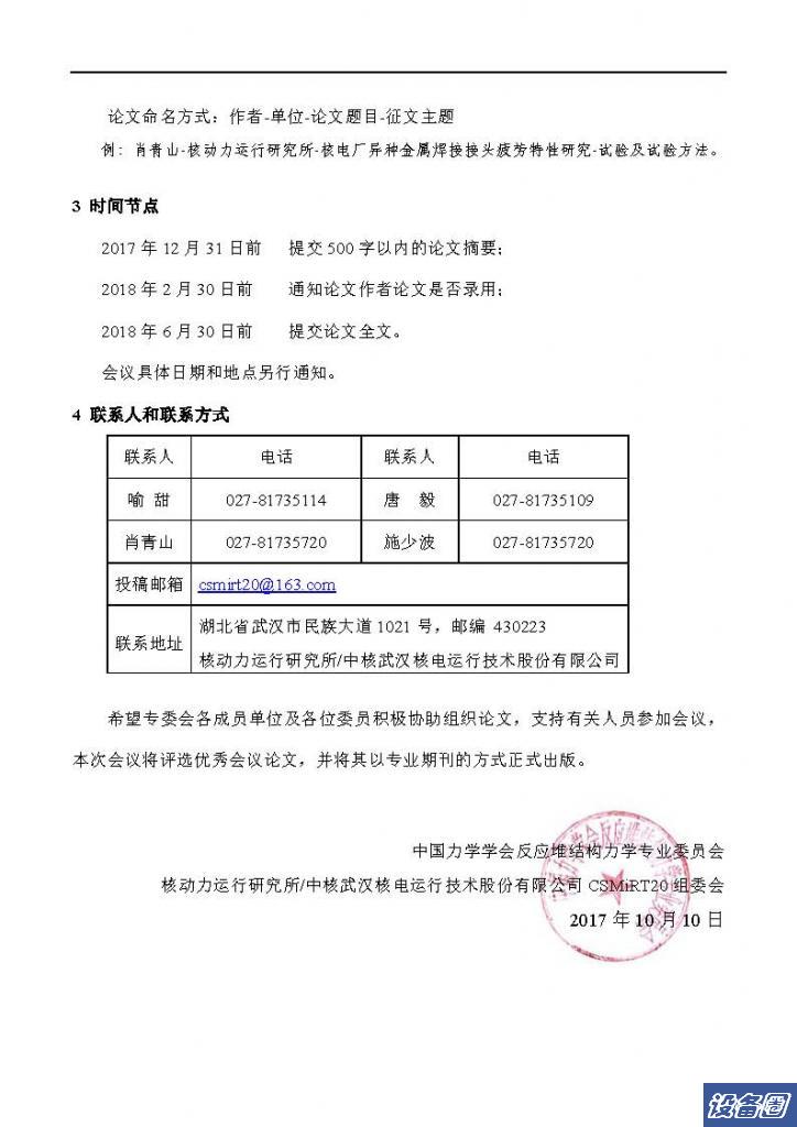 第二十届全国反应堆结构力学会议征文通知