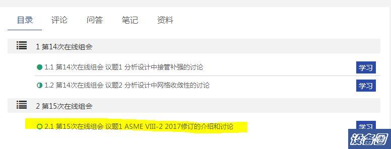 新增课程《 第15次在线组会 议题1 ASME VIII-2 2017修订的介绍和讨论》