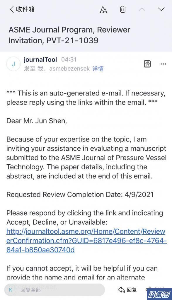 担任SCI期刊ASME Journal of Pressure Vessel Technology审稿人